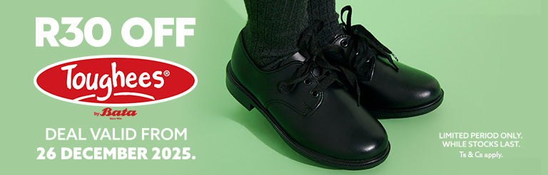Children’s feet grow fast, and Ackermans knows that school shoes need to be tough, comfortable, and long-lasting. Our range includes Toughees school shoes and other durable styles designed to handle: