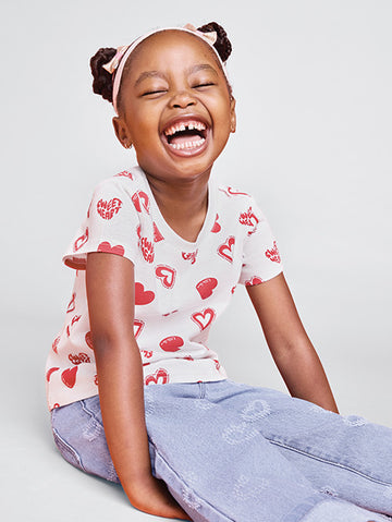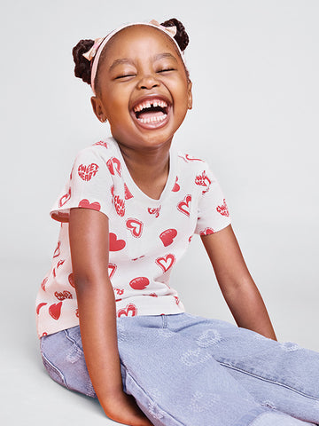 Treat your little sweetheart to this scrumptious red t-shirt dress, smothered in adorable heart-shaped donuts!...