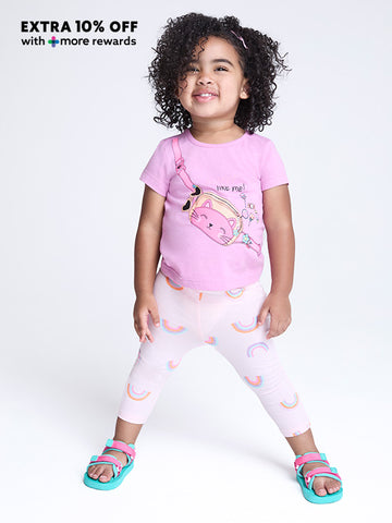 Add a little sparkle to her step! These dusty pink foil-print leggings bring shine, stretch,...